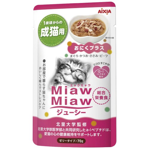 考慮愛貓的心臟健康維護的全面營養的主食軟包。添加 a-i 胜肽(愛喜雅獨家專利)有助於貓的壓力指數降低、